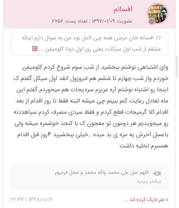 شوهرت از الان هر ۲-۴ روز حتما تخلیه بشه.