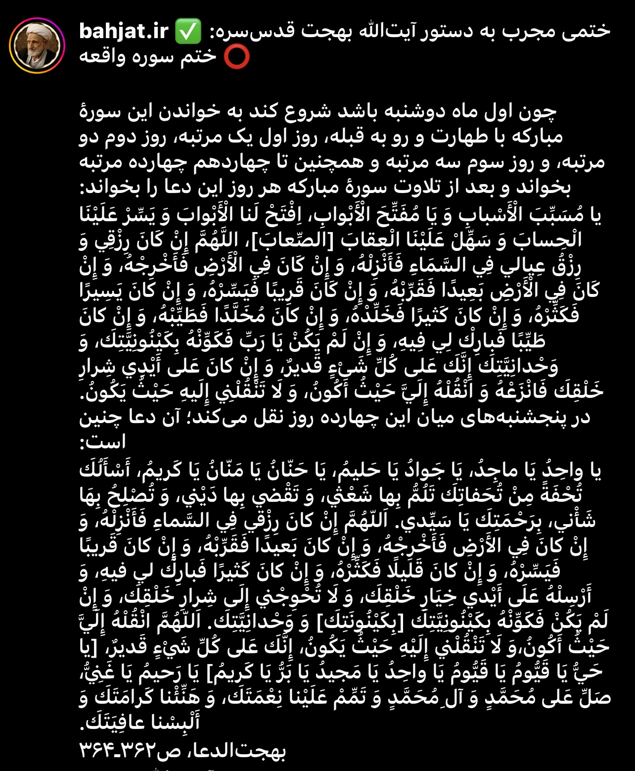 maya00 مدیر استارتر عضویت: 1397/06/22 تعداد پست: 1252 اینم طریقه ختم التماس دعا دوستان میشه یه صلوات مهمونم کنین❤️🌹