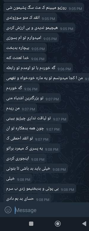 تو رو خدا بیایین بگین حق من شنیدن این حرفا بود؟ اسکرین پیامایی نامزدم😭😭😭😭😭