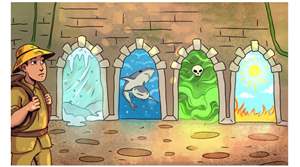 مردی ربوده و در خانه ای محبوس شده. این خانه چهار در دارد که از یکی از آن ها می تواند فرار کند. پشت در اول سرمای شدیدی در انتظار او است که تا سر حد مرگ او را منجمد خواهد کرد. پشت در دوم کوسه های بسیار گرسنه ای وجود دارد. اتاقی که پشت در سوم قرار گرفته مملوء از گازهای سمی است. در چهارم هم به جایی می رسد که چنان آفتاب داغی دارد که هر چیزی را در دم می سوزاند. او چطور می تواند فرار کند؟