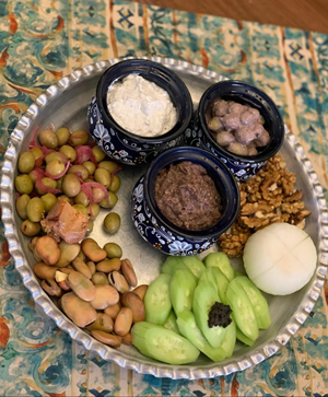 گردو سیر تازه اشپل باقالی محلی حالا یا خشک یا تازه و گاهی زیتون یا زیتون پرورده
