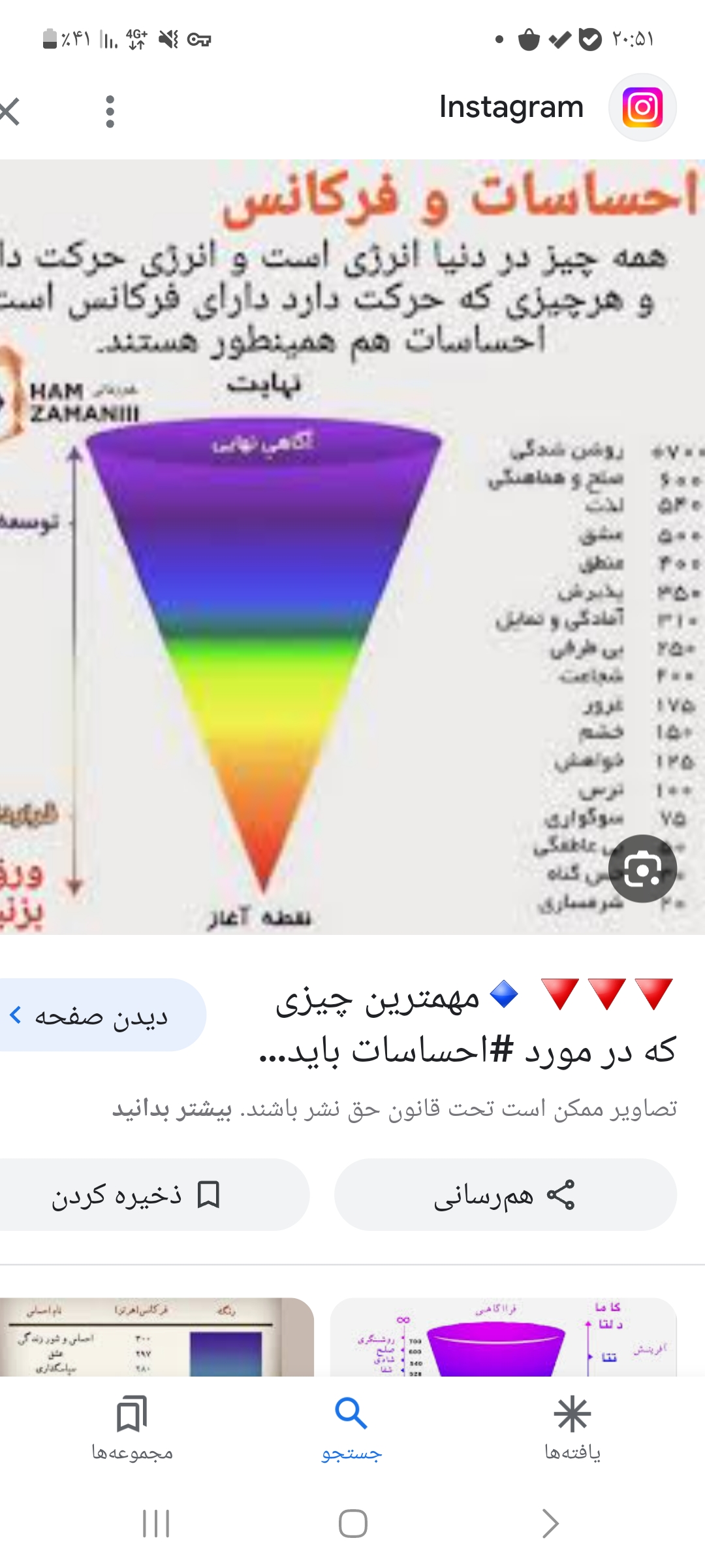 delvan6 عضویت: 1400/07/17 تعداد پست: 6665 اگه طبق این نمودار پیش بریم و سعی کنیم در محدوده بنفش و آبی باشیم اتفاقات خوب به سمتمون جذب میشن اگه دیدی با کامنتم مخالفت کردی و جوابتو ندادم یعنی حوصله بحث ندارم😇 آره اصلا هر چی شما میگی درسته😁