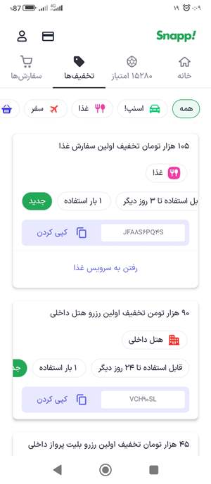 خانوما کسی کدتخفیف سفارش غذا اسنپ داره؟براش دعا میکنم