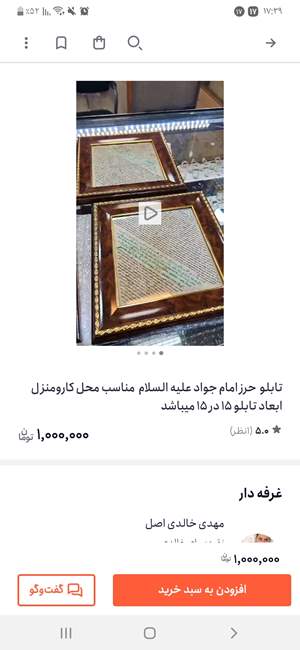 اینم تابلو حرز کبیر امام جواد علیه السلام روی پوست آهو در باسلام تا ترب ( بعضیاشون پایینشون حرز صغیر امام جواد علیه السلام هم داره " کلا یه جمله س : یا نورُ یا برهانُ یا مبینُ یا منیرُ تا الی آخر ) این ۲ حرز مخثوصا حرز کبیر امام جواد جلوگیری میکنه از سحر جدید و تمدید سحر قدیمی و چشم زخم و نفرین و ۸۰ تا خاصیت دیگه هم داره