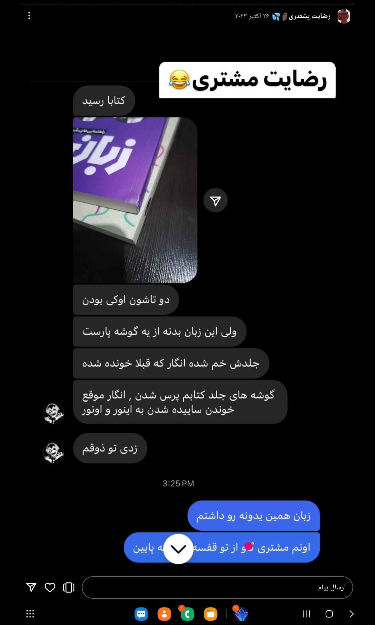 اون که خیلی باحاله😂 من بخاطر ادمینش کل کتابامو از اونجا سفارش میدم😂❤️