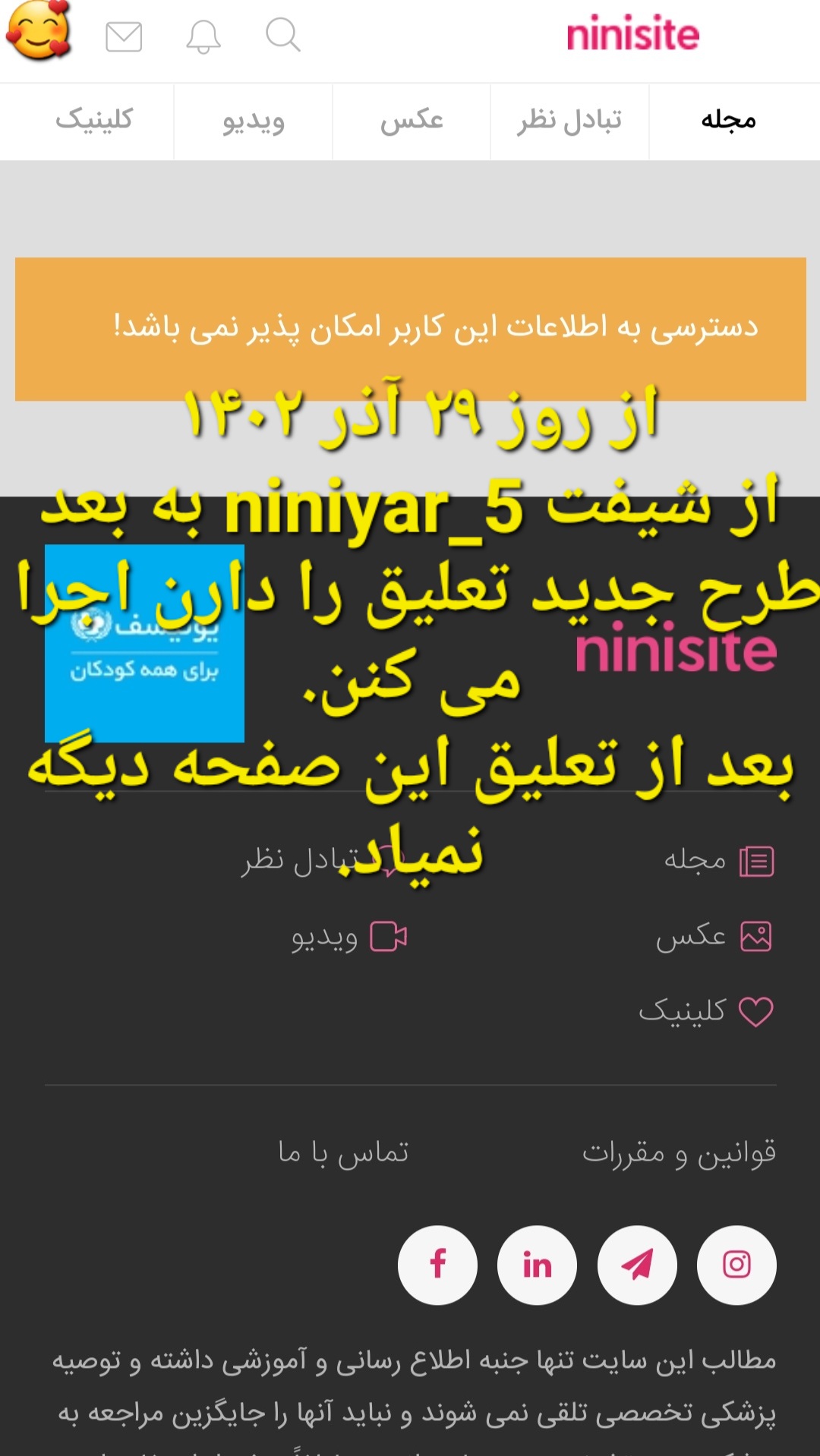 ✅️ در مورد پست ها اگر شماره تلفن، عکس، اطلاعات شخصی و... دارین ⬅️ به نی نی یار همون شیفت بگین براتون پاک می کنن یعنی: