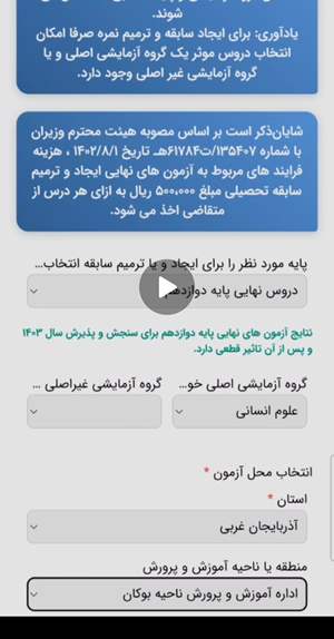 دقت کنین منطقه ای ک انتخاب میکنین جایی باشه ک مشکل نداشته باشین برا امتحان دادن چون امکان تغییر نیس
