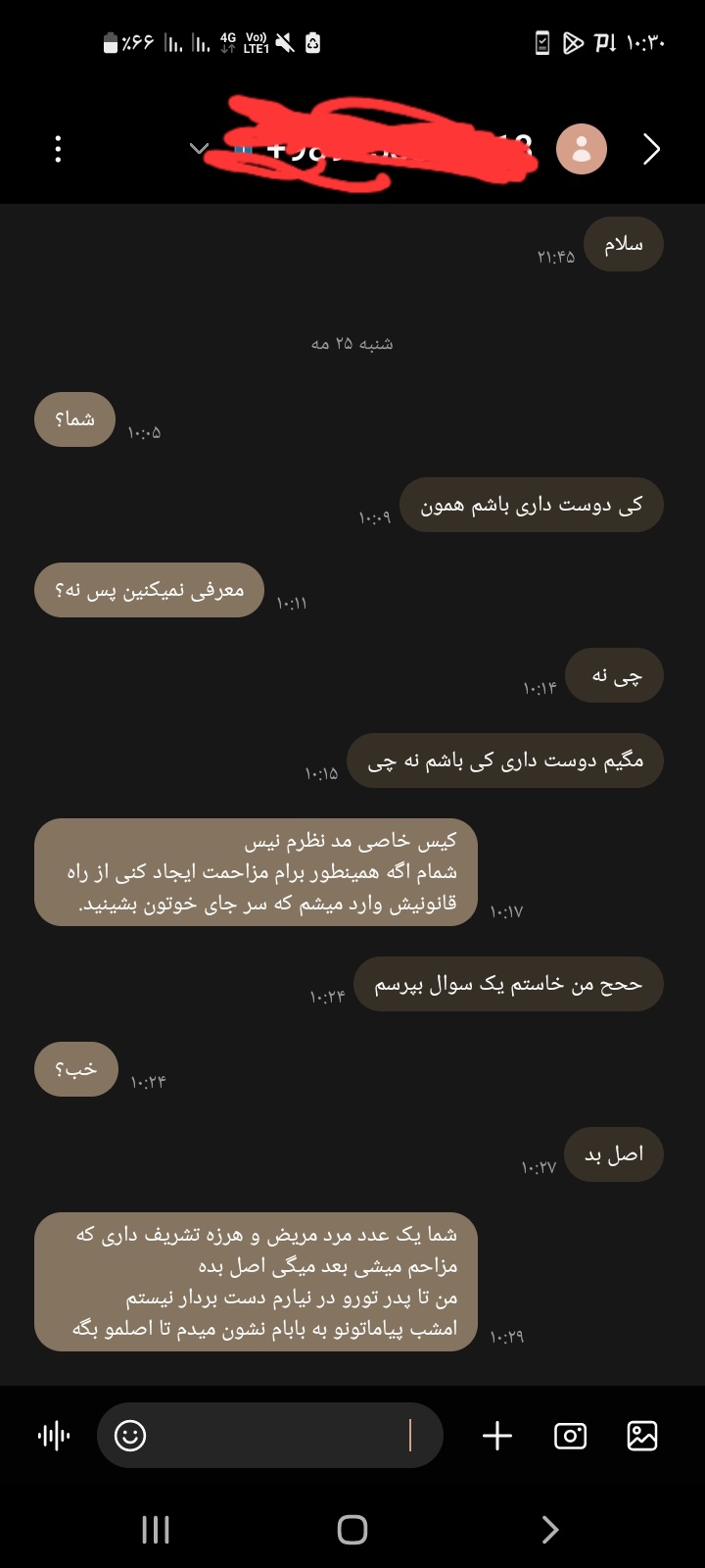 هربار پیام داد، گوشیو بده دست پدری مادری قشنگ فوش کش کنن، خدابه راه راست هدایتش کنه😐