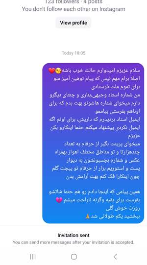 الان فهمیدم که این دختره بدبخت پیام توهین آمیزی که براش فرستاده بودمو برای چنتا از استادا و تمام دانشجو ها بهمراه ی مش دروغ فرستاده جهت مظلوم بازی در اوردن و بدجلوه دادن شخصیت من. شروع کننده اون بود و اون حرفاش بدتر بودن ولی حقیقتو تغییر داده بوده بیچاره