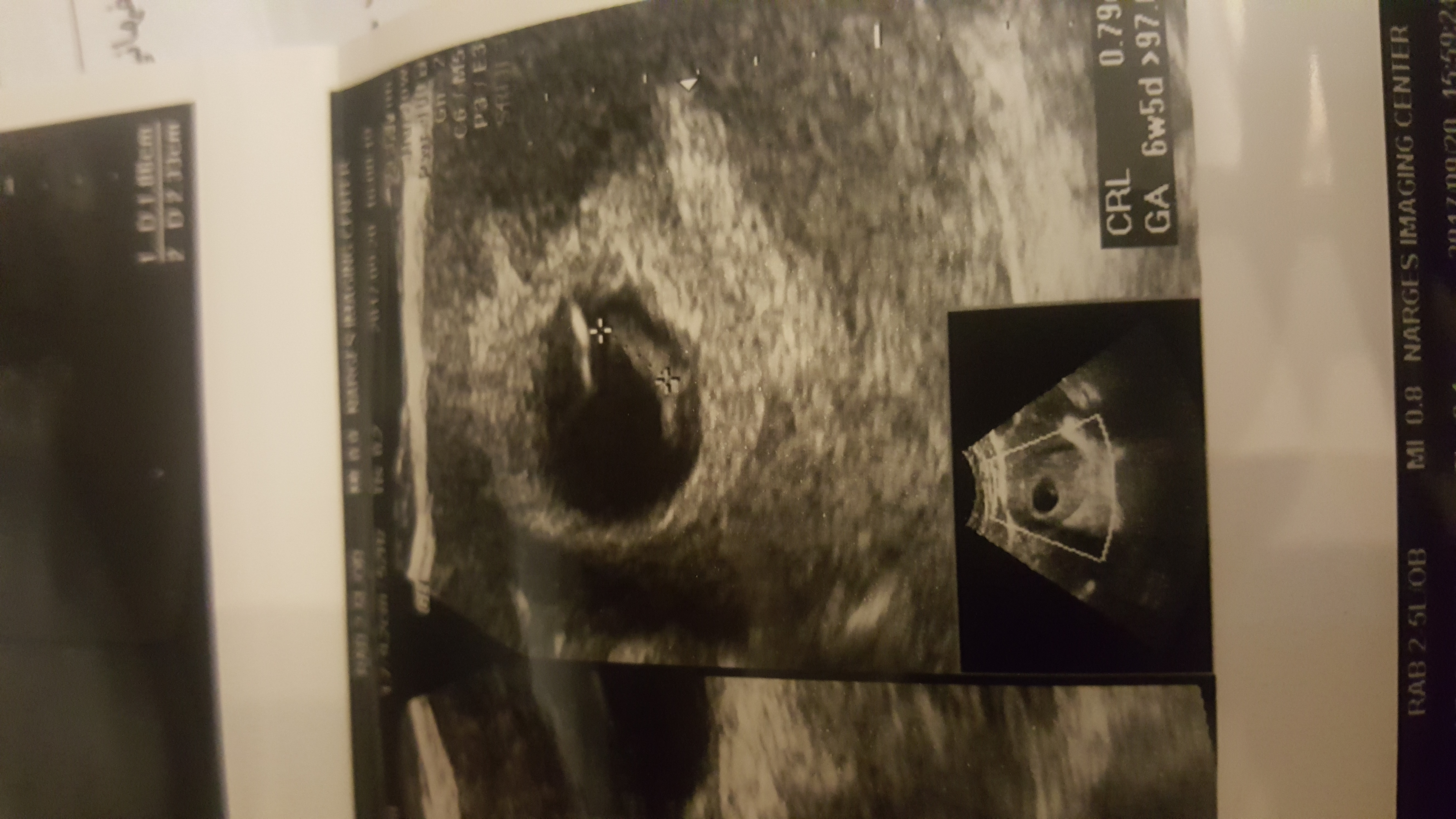 ببین عکسمو بچرخون ...چرخید تو گذاشتن ... این عکس ساک حاملگیمه تو هفته ۷ ... ببین جنین یا همون چیزی که قراره جنین بشه سمت چپ پایینه ... چپ پایین خود ساک ... نه رحم ... یعنی ممکنه دختر سمت راست رحم هم باشه یا پسر چپ رحم ... ولی اون جوجوی تو ساک باید ببینیم متمایل به چپه ساکه یا راست ساک حاملگی