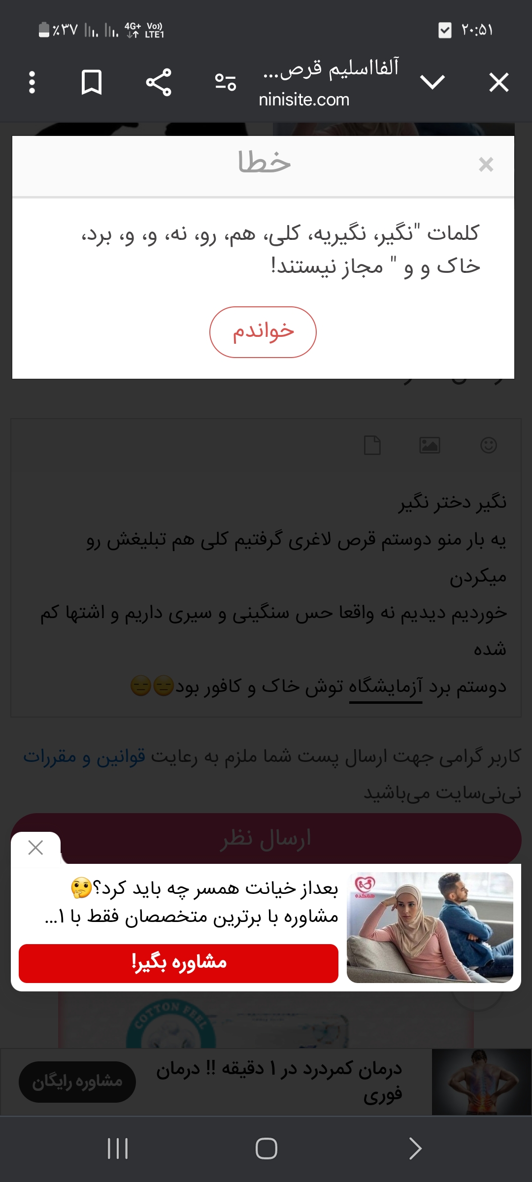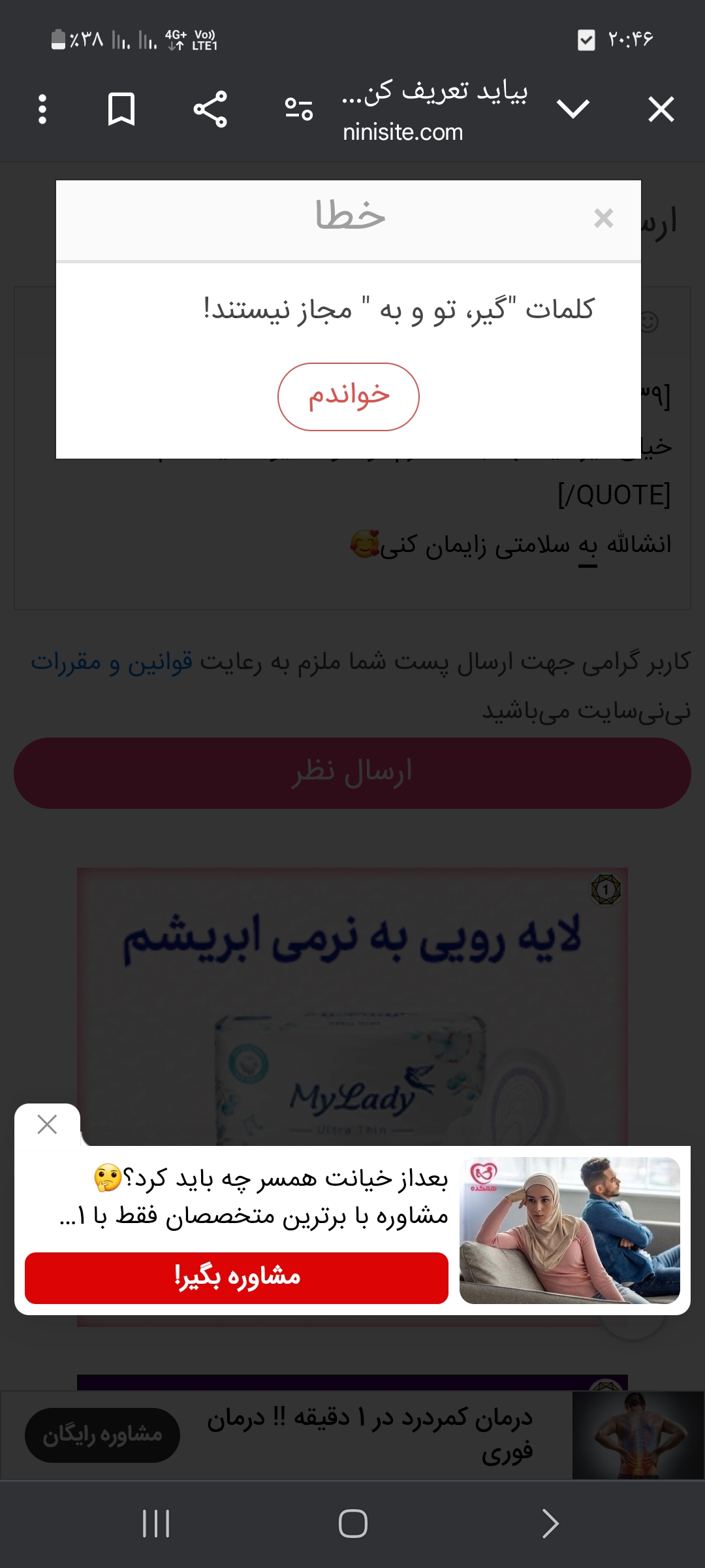 کاربر گرامی جهت ارسال پست شما ملزم به رعایت قوانین و مقررات نی‌نی‌سایت می‌باشید