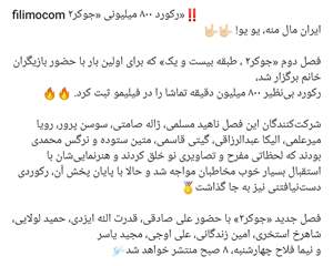 👇🏻پستِ برگه ی اینستاگرمیِ *سامانه ی نمایشِ درخواستیِ فیلیمو* ، پیرامونِ *مجموعه ی نمایش خانگیِ جوکر*