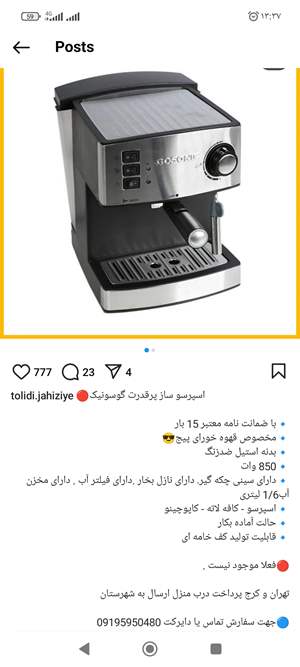 سلام گوسونیک مدل ۸۶۷ بخرم یا تلیونیکس 5120 نگین من چی دارم راضی ام و چی بخر،فقط بین این دوتا بگین کدوم،نمیخام زیاد هزینه کنم چون اضلا اهل قهوه نیستیم و فقط برا مهمون و کلاسش میخام،تلیونیکس ۲۰ بار و توانش ۱۲۰۰ وات و قیمتش ۳۲۰۰،گوسونیک تو د..ج کالا همه ازش خوب گفتن ۱۵ بار و توانش ۸۵۰ وات و قیمتش ۳۷۵۰ حالا کدومو بگیرم