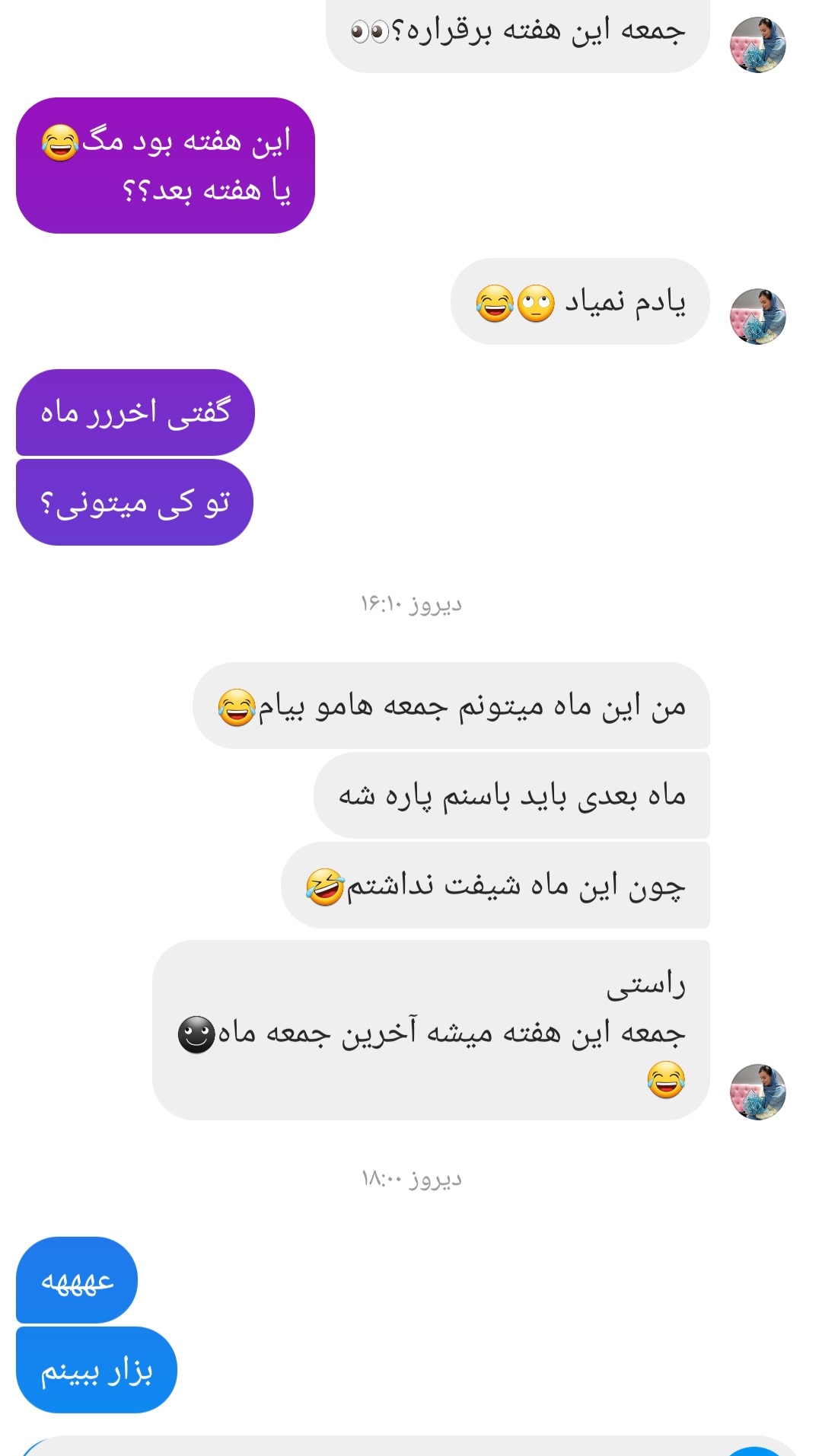 بچه ها من دوساله فارغ التحصیل شدم چن روز پیش یکی از هم اتاقیام زنگ زد گفتیم همو ببینیم.