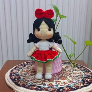 خانوما یه عروسک دختر هندوانه ای از قبل بافتم اگه کسی برای شب یلدای دخترش میخواد 😊