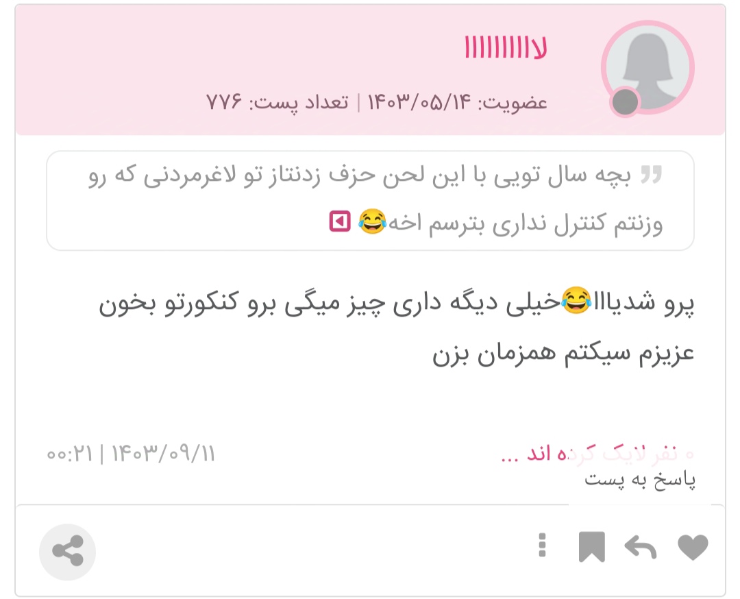 مبتونستن جوابشو بدم ولی دیگ از حد گذشتهاخه کدوم زنی اینجوری حرف میزنه