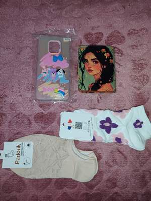 کیف پول و دو عدد جوراب و قاب گوشی 😁😁 همینا شد ۵۰۰ تومن ناقابل 🥱😤 اما کلی ذوق کردم براشون 😎😎