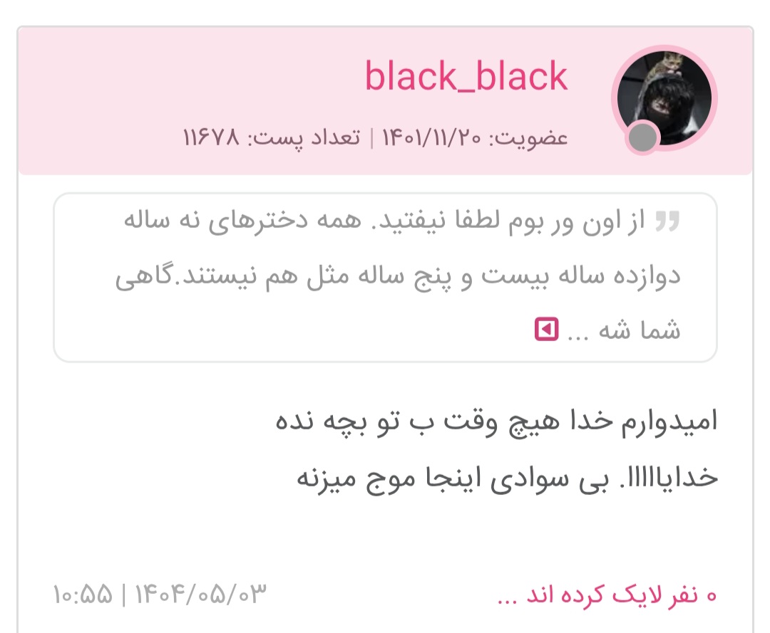 من مسوول شهوت دختر زیر هجده سال و یا خودشیفتگی بابای دختری که توی دوازده سالگی به زور شوهرش میده نیستم. تو رو به خاطر نفرینت واگذارت کردم به باب الحوائج.