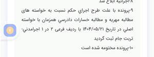 سلام خسته نباشید این برای مهریه هست شوهرم اعسار زده الان از یک ماه هم گذشته رفتم به شعبه مربوطه گفتش برو خانوم ابلاغ میشه یه خانومه بداخلاق بود بعدش نگاه کردم نوشته تو سایت پرونده مختومه شده چیکار کنم😭