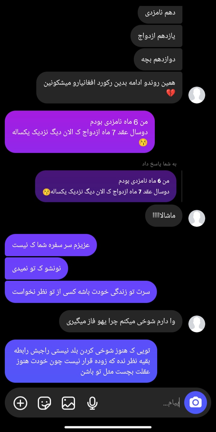 nyla__889 عضویت: 1402/06/01 تعداد پست: 690 اگه به ماهم نمیگی حسود خیلی زوده دوازدهمی میخوای بچه بیاری وای خاک ب سرم من تاره فهمیدم منظورش کلاس دوازدهمه💔💔💔