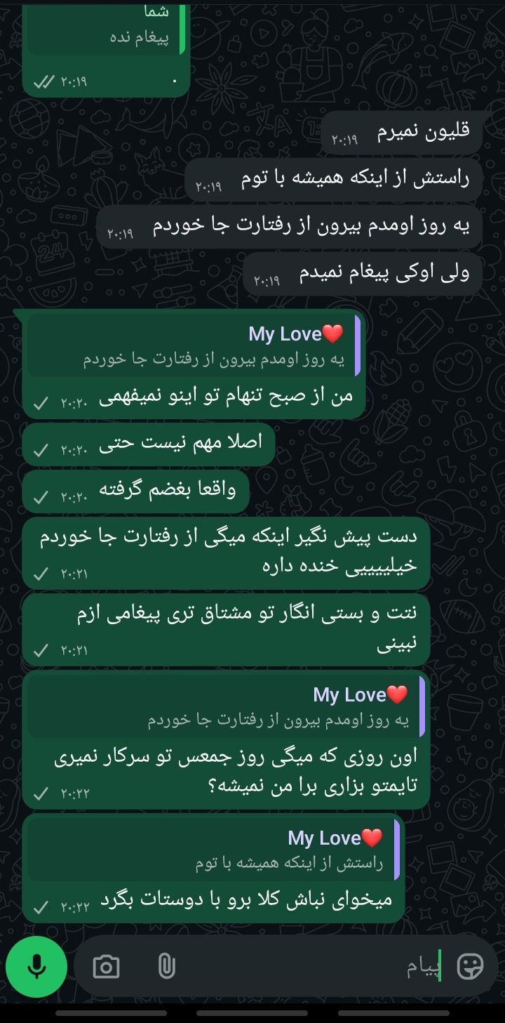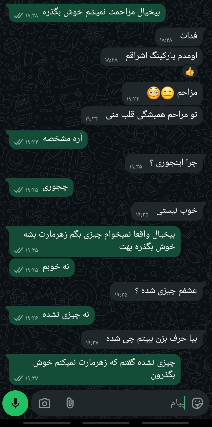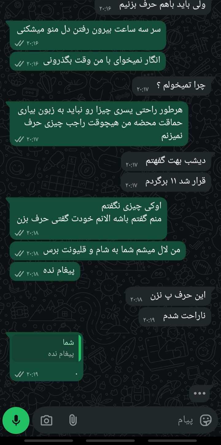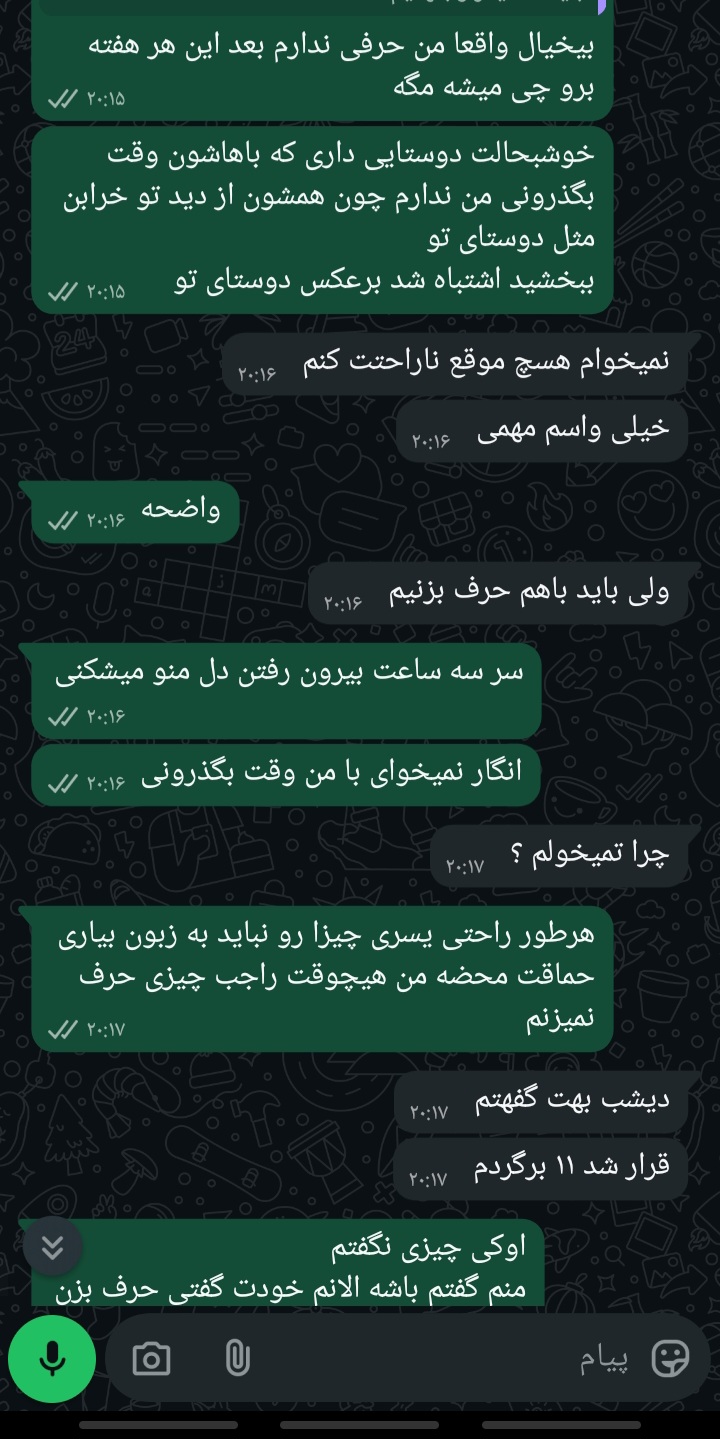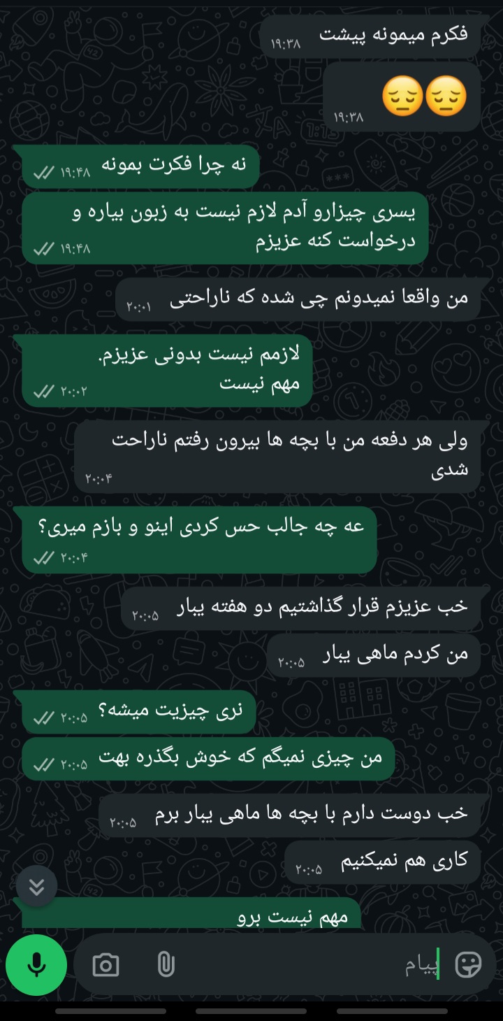 حالا از این به بعد اولا مستقیما بگو حستو مثلا من حالم خوب نیست امروز میخوام پیشم باشی