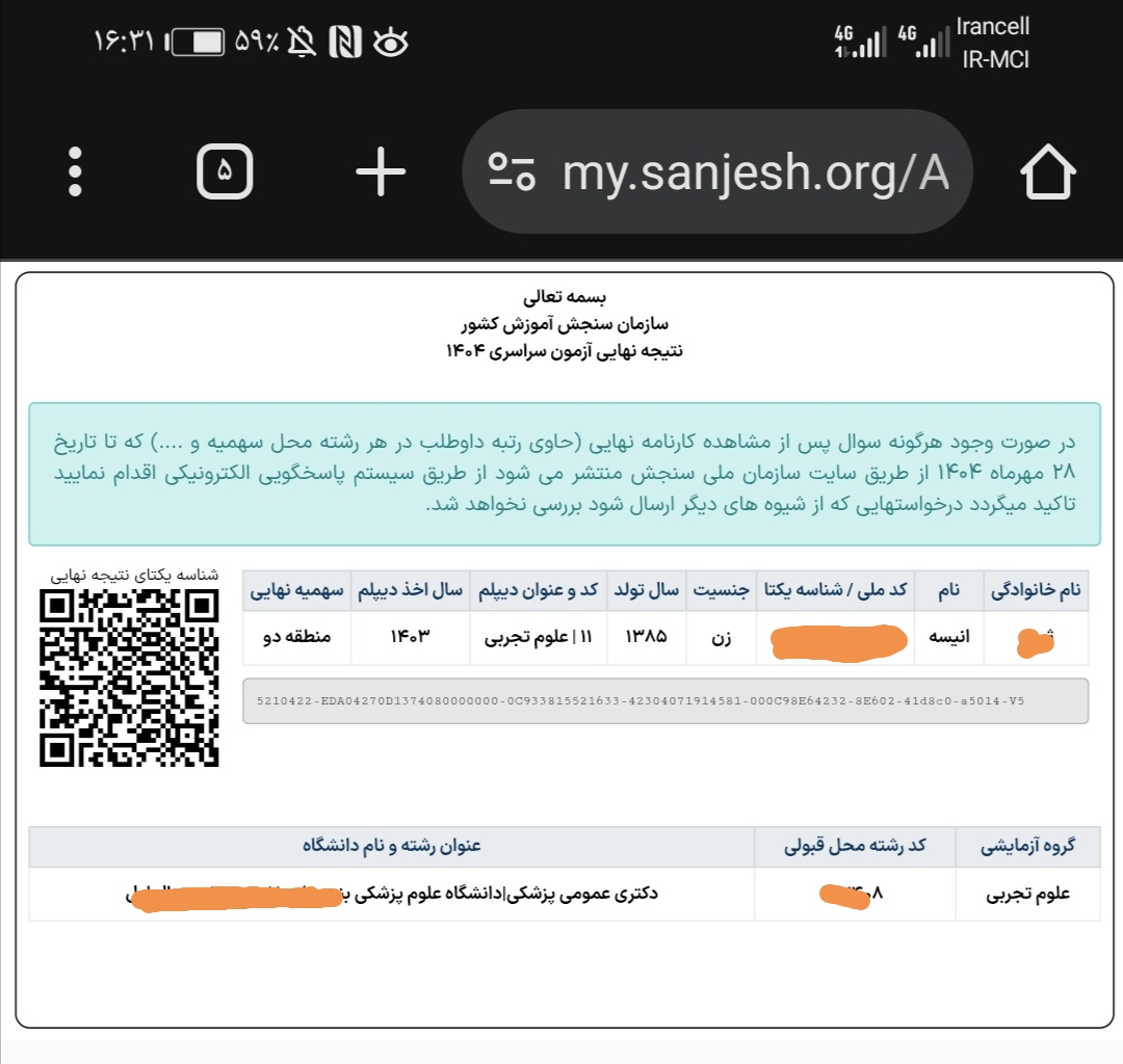 عزیزم من از مهر پارسال که نتیجه اومده بود و قبول نشدم