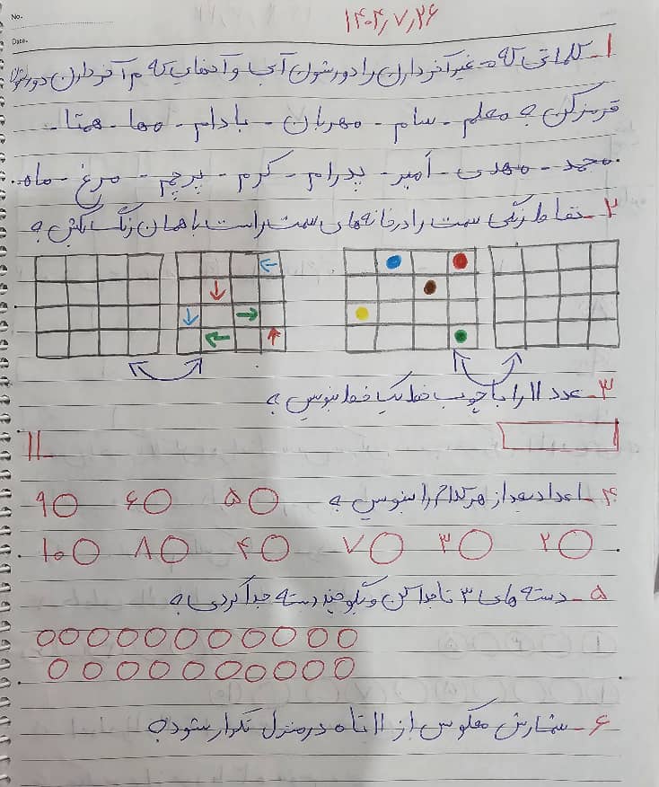 ۵ سالشه و پیش ۲ میره میخام براتون اموزش دیروزشون رو بفرصتم.اینا درس دیروزشون است..و هر روز هم معلم بهشون مشق میده که توی دفترمشقشون ما مینویسیم و خودشون حل میکنن