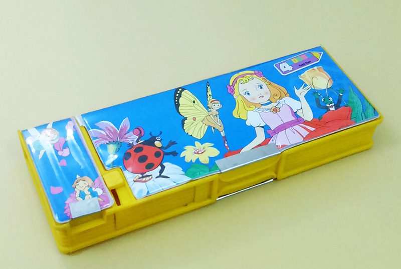 خودکار پاک کن قشنگ جامدادی هم پلاستیکی آبی رنگ بود هنوز یادمه روش طراحی کارتونی و اکلیلی طور بود