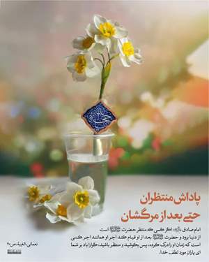 🌱 اگر كسى كه منتظر حضرت است از دنيا برود و حضرت بعد از او قيام كند اجر او همانند اجر كسى است كه زمان او را درک كرده، پس بكوشيد و منتظر باشيد، گوارا باد بر شما اى ياران مورد لطف خدا.