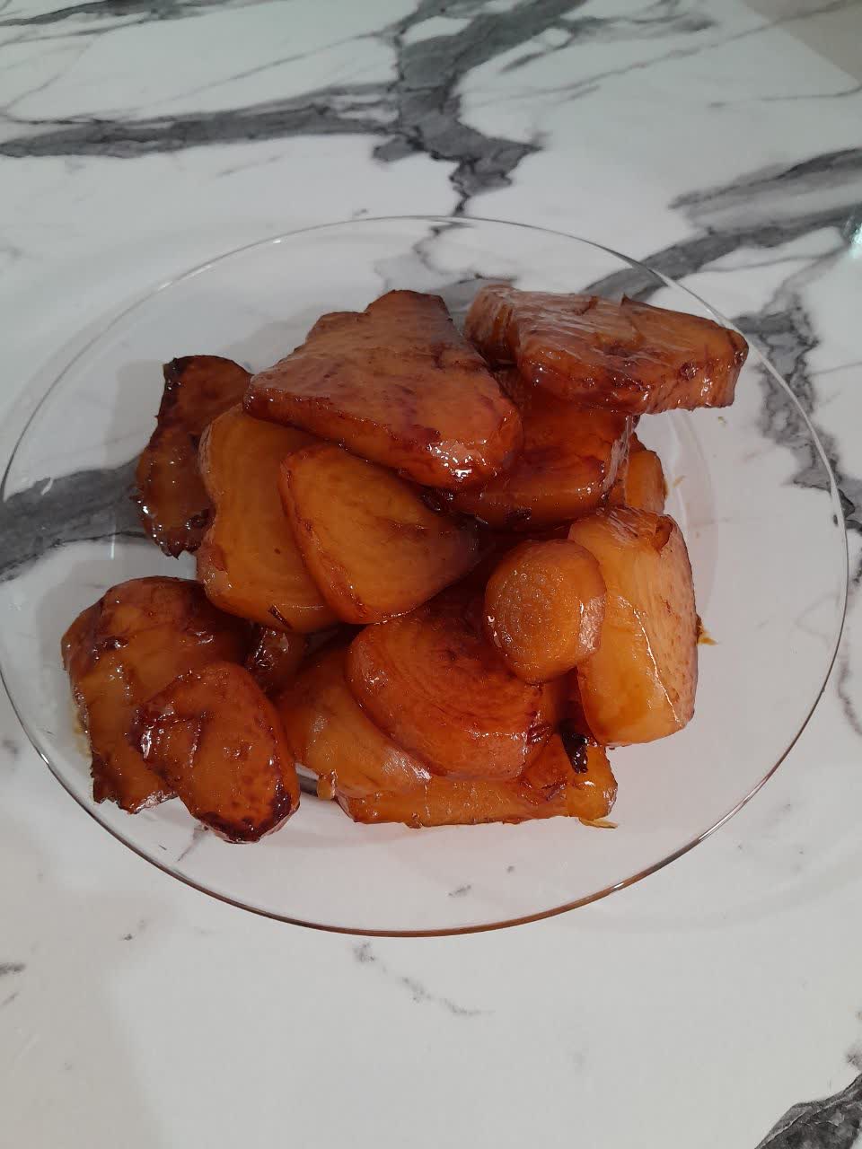 چغندر پختم آخرش برش زدم گذاشتم با شیره انگور خوب سرخ شد