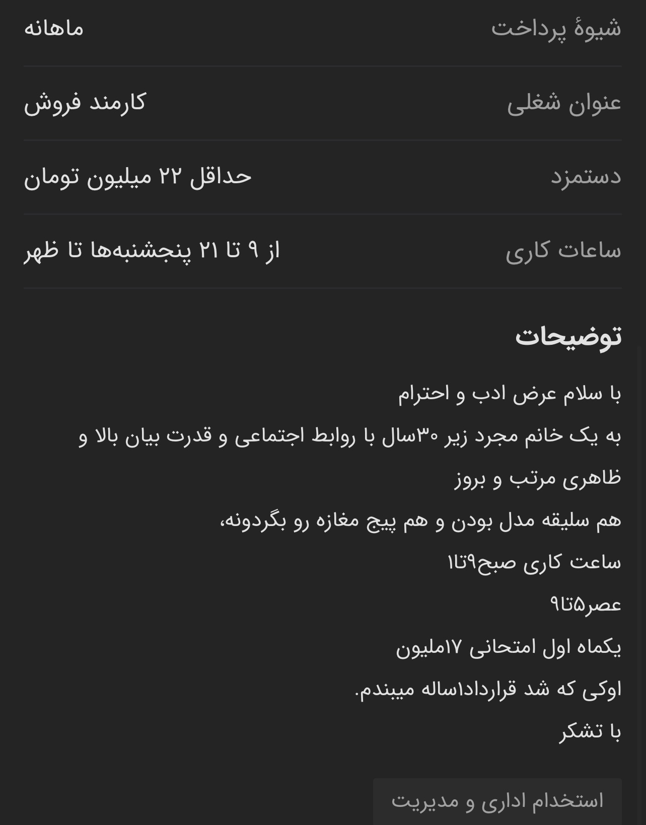 اخه حقوق ها تو شهر ما برای دو شیفت و این ساعت نهایت ۸/۹ تومنه