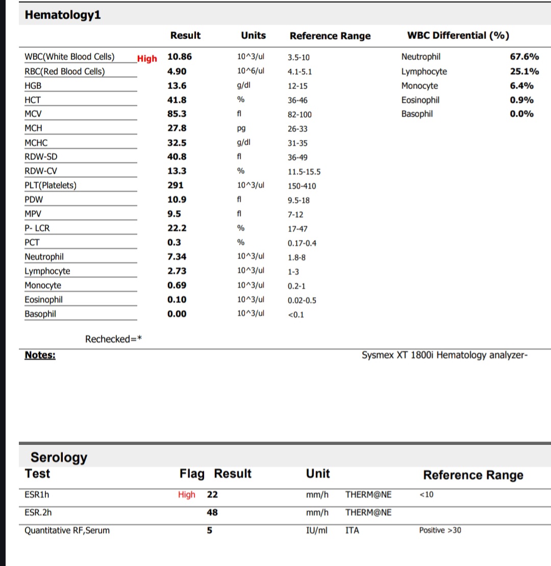 snow000 عضویت: 1402/04/30 تعداد پست: 774 نه روماتیسم آزمایش مخصوص،داره بله میدونم میگم این فاکتور در روماتیسم یا هربیماری التهابی میتونه بالا بره.