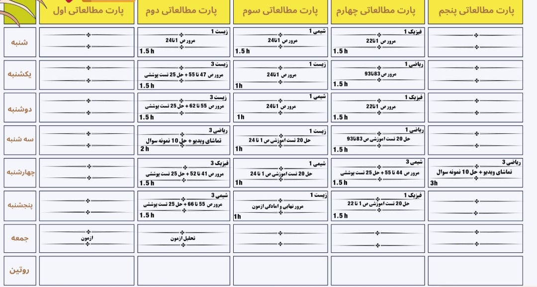 عکس برنامشو گذاشتم میشه اونم نگاه کنی کلا روندش رو بگی خوبه به نظرت یا نه؟؟؟