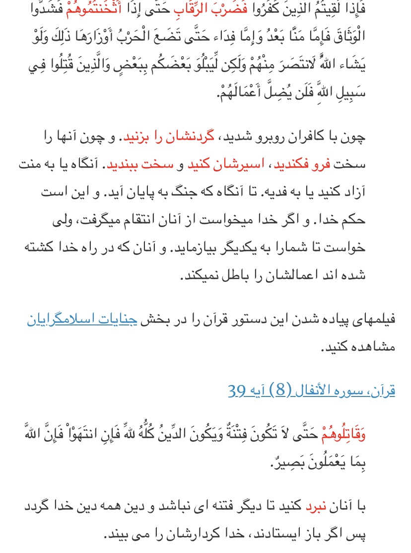نه نه دقیقا میگه اونهاییکه از اسلام بیرون میرن رو گردن بزنید و یه جا دیگه میگه در دین اجبار نیس اما ...