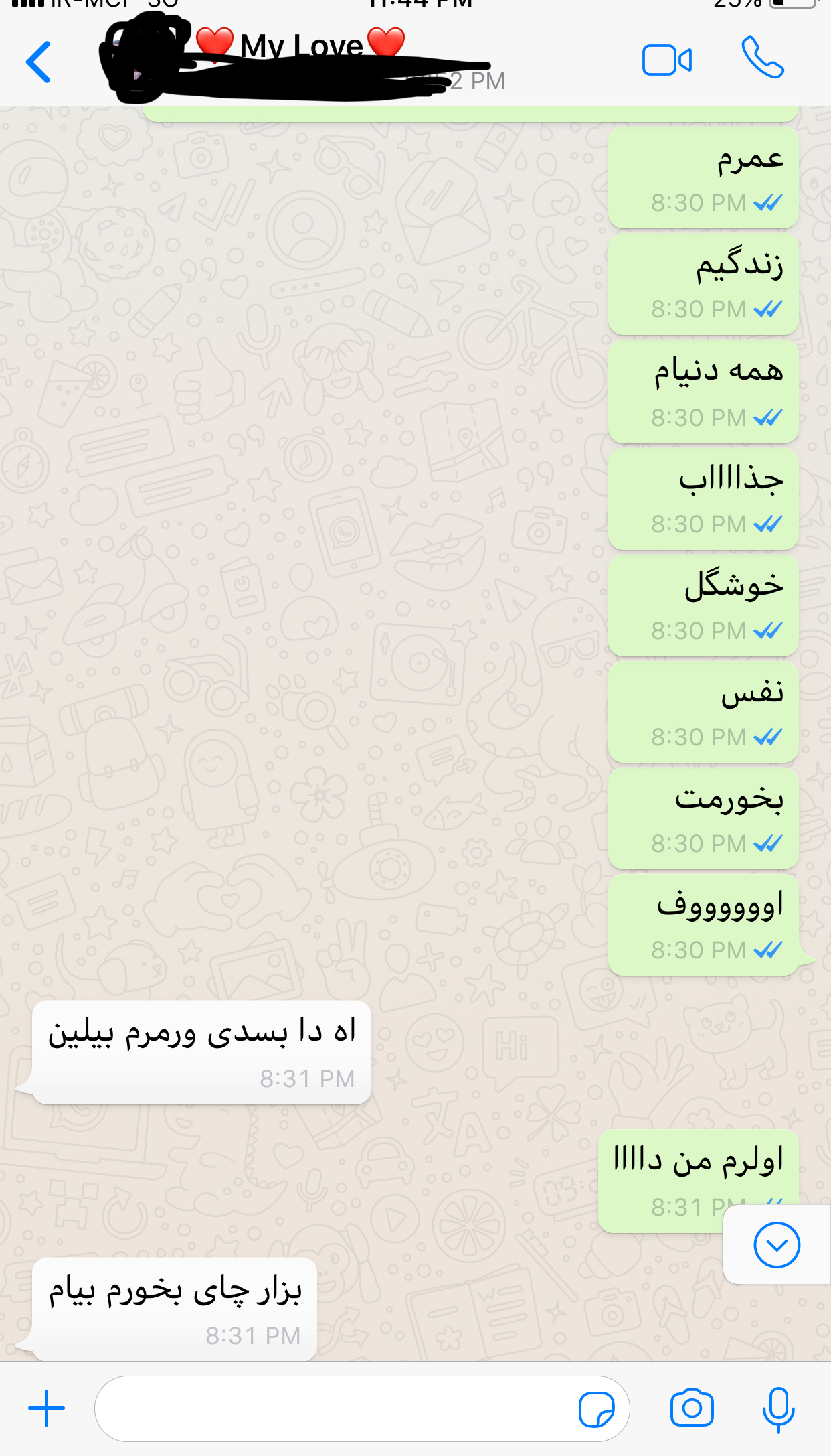 شوهرم رفته بود ارایشگاه خوشگل کرده بود من دارم اداهای اونو در میارم اونم  داره اداهایه منو در میاره اون حرف ترکی هم گفته اه بسه دیگه بهت نمیدم