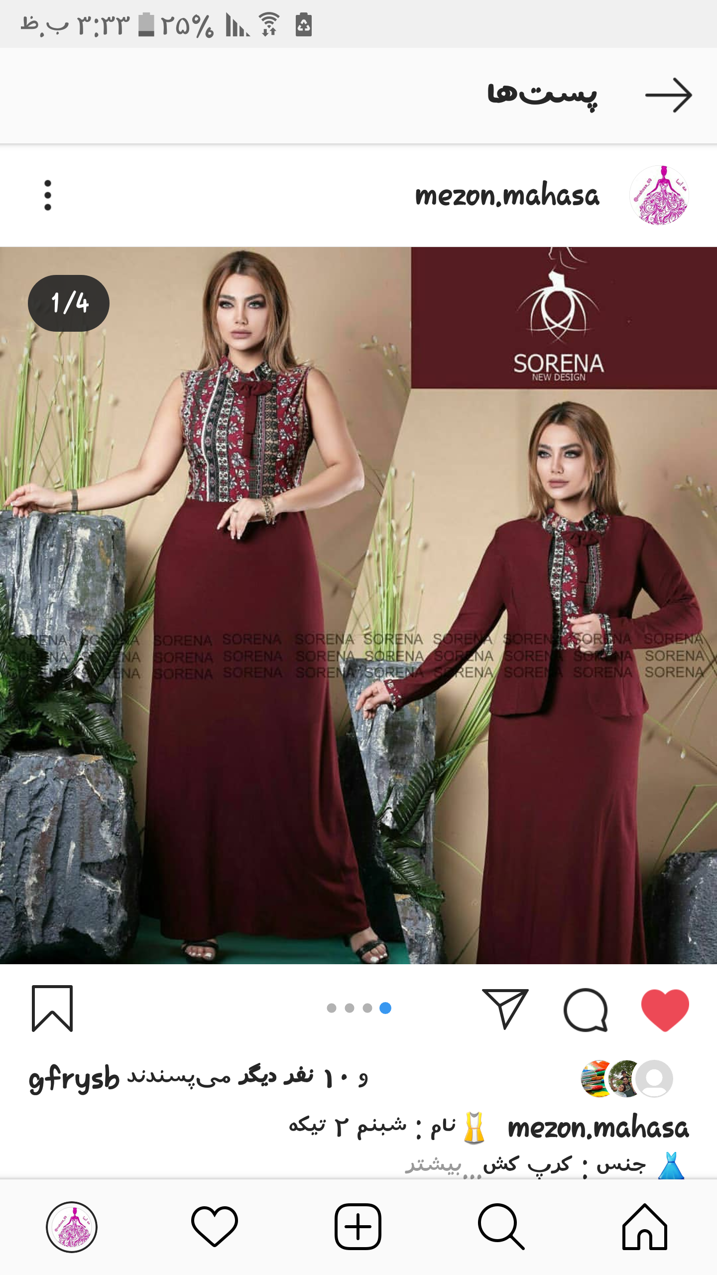 کلی لباسای شیک و مناسب با ارسال رایگان دارم.سه سال که فروش اینترنتی دارم پیجم به تازگی زدم یسر بزن ضرر نمیکنی mezon.mahasa