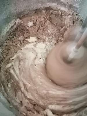مخلوط آرد رو اضافه میکنیم و با دور کند به مدت چند ثانیه هم میزنیم تا آرد با کرممون مخلوط بشود.