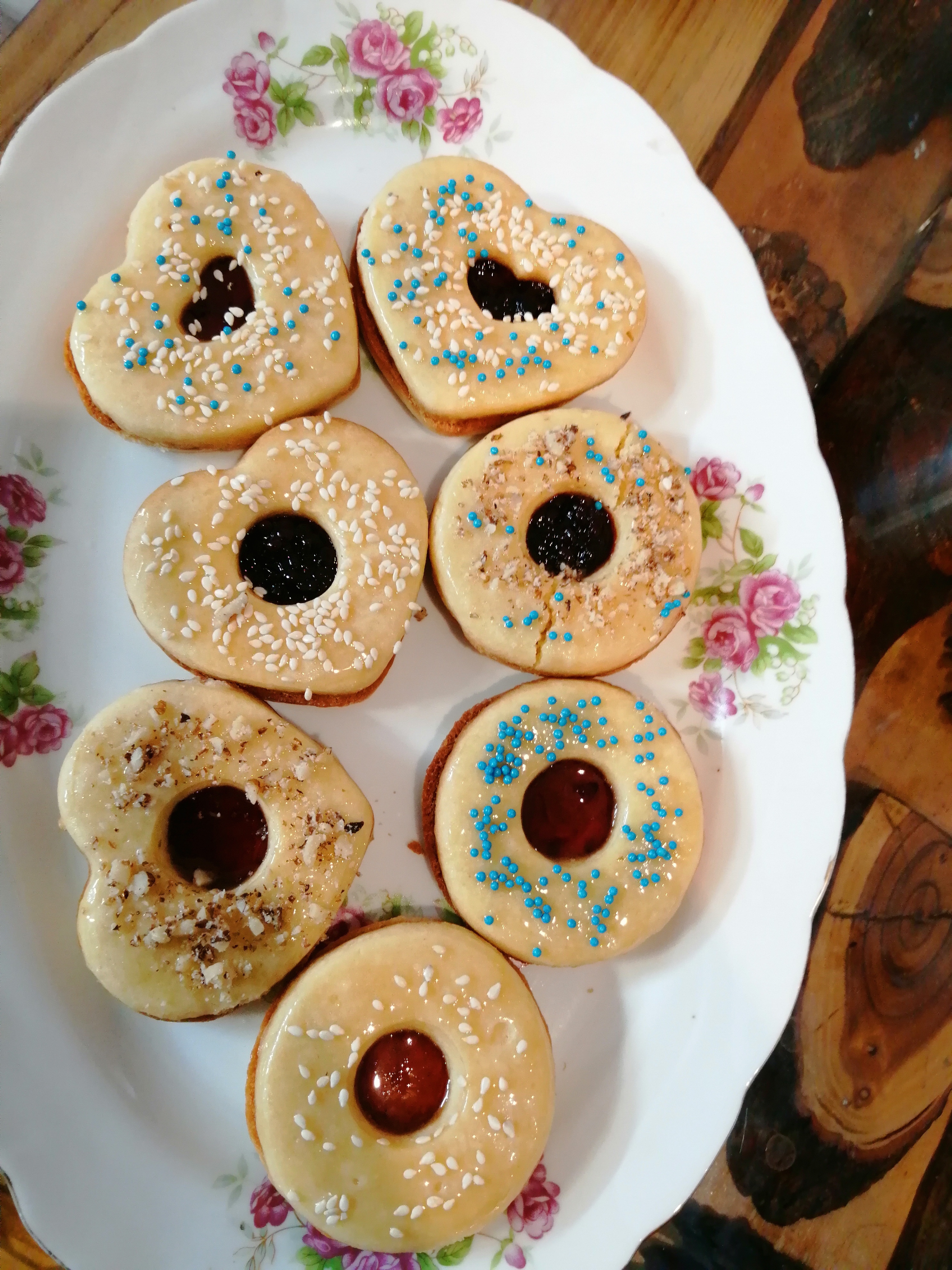 بین دو تاپلاستیک خمیر و باز کنید با وردنه باز کنید نازک نباشه اصلا حدودا 5 میل. قالب بزنید جفت جفت. یکی ساده یکی وسطش حفره دار.