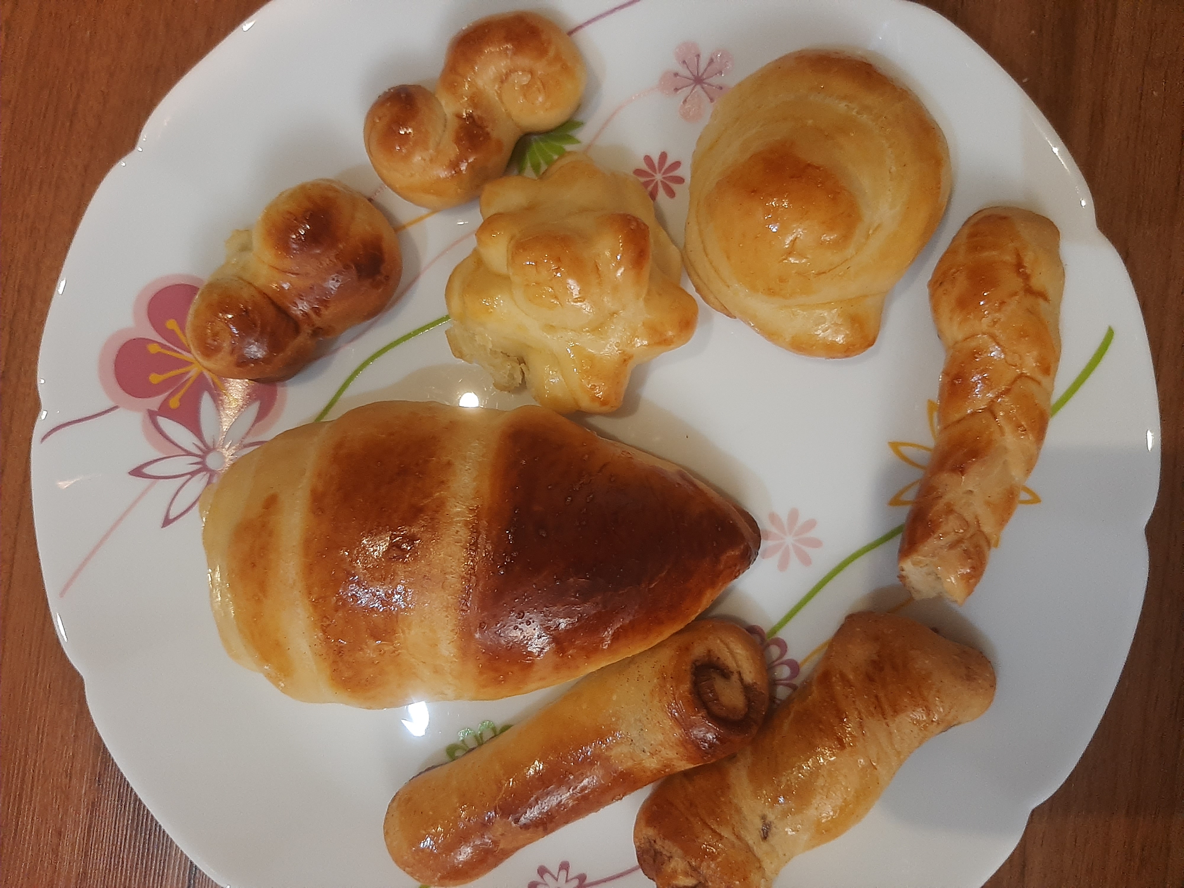 من نون شیرمال درست میکنم داخلش شکلات تخته ای یا نوتلا میزنم شبیه کروسان😂😂😂 قالب پسرم میکنم ب این شکل😋😋😋