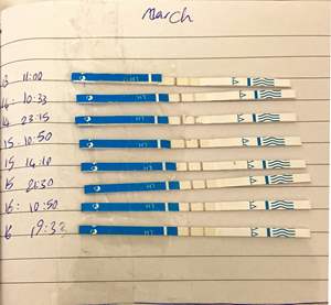 شما باید از روز ۱۰ هر روز یه کیت با ادرار دوم بگیری و کیت هاتونو نگه دارین ازشون عکس بگیرین تا ببینیم اثبه تخمک گذاری نزدیک میشین یا دور میشین.