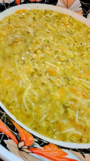 گلم سینه مرغ ..هویج ..جو پرک ...کدو حلوایی...سبزی سوپی ...برنج رشتی و یه پیاز درسته رو میذاری میپزه بعدشم که قشنگ جا افتاد رشته سوپی کمی رب گوجه و نمک