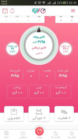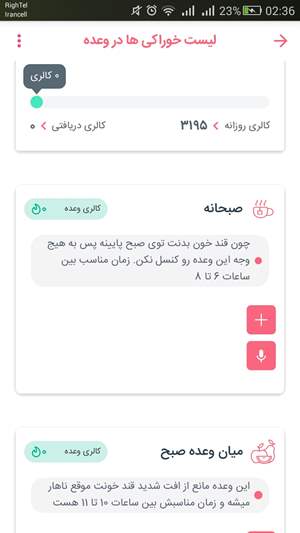 تو هر کدوم از اونا یه + هست میبینی اونو بزن از تو لیست خوراکی ها هر چی خوردی انتخاب کن اون خودش در اخر تو همون صفحه اولس که نوشته کالری روزانه پایینش مینویسه چقد دریافت کردی یا از دست دادی