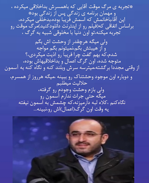 تجربه ی مرگ موقت آقایی که باهمسرش بداخلاقی میکرده ،و مهمان برنامه ی زندگی پس از زندگی بود*این آقا،باخانمش که اسمش فریبا بوده،بدخلقی میکرده،