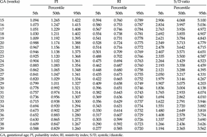 رنجهای نرمال شریان نافی هم براتون میزارم، بهش میگن umbilical artery Doppler indices- بهش umb هم میگن تو سونو