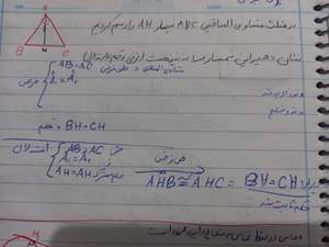 پس این مثلث ها بنا به حالت ض ز ض هم نهشتن پس می نویسیم مثلثahbهم نهشته باahc که سایر جزاش همون حکمه و bhمساوی باریکه ثابت شد