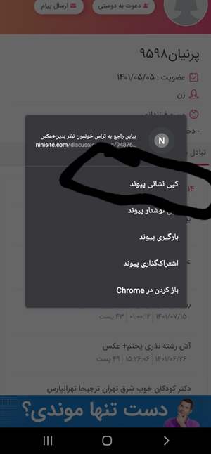 ۳: این صفحه برات باز میشه و تو باید روی کپی نشانی پیوند رو بزنی