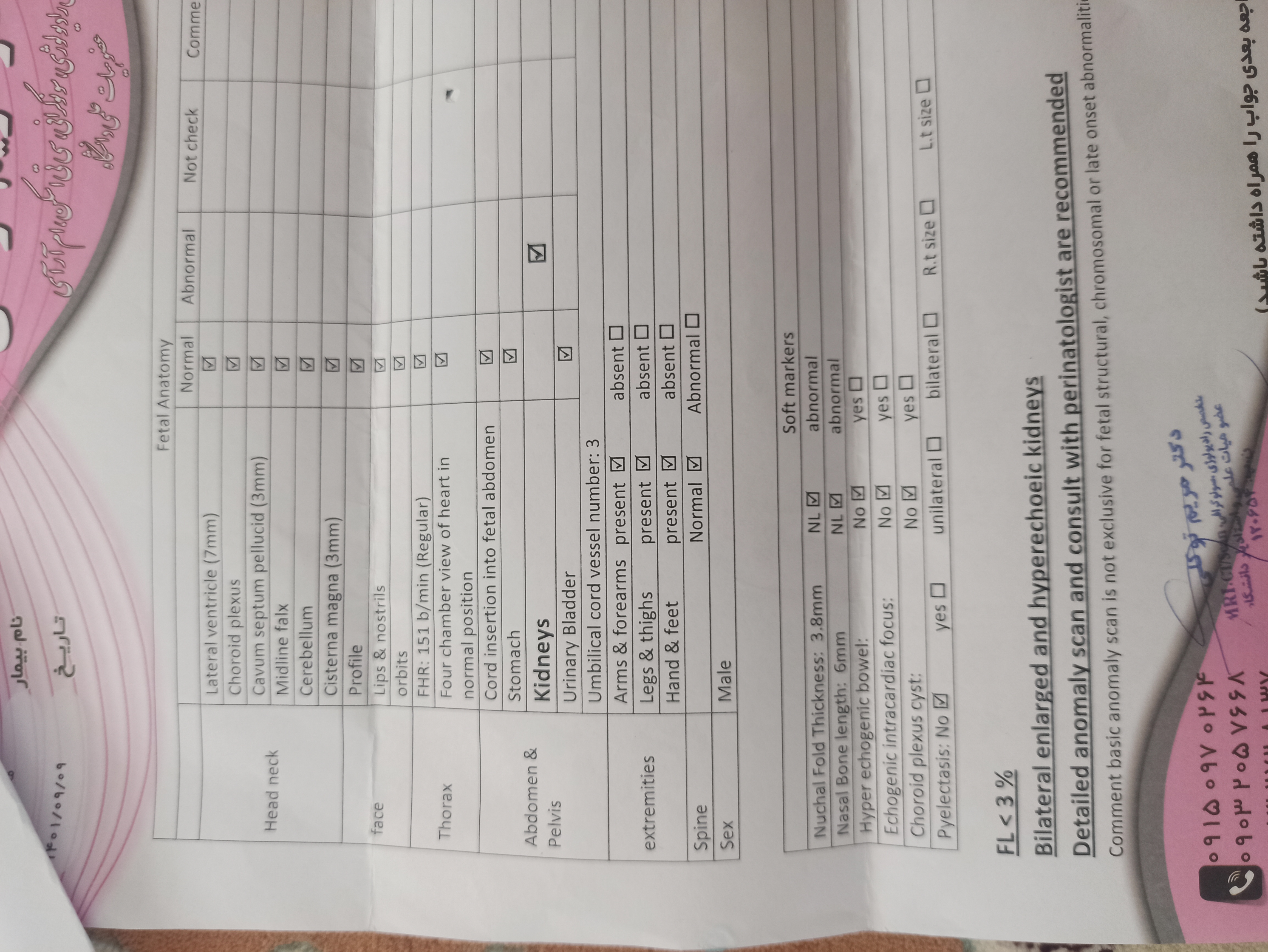 عزیزم با دکتر مشورت کن بیشتر مشکلات کلیه جنین توی بارداری درست میشه نگران نباش